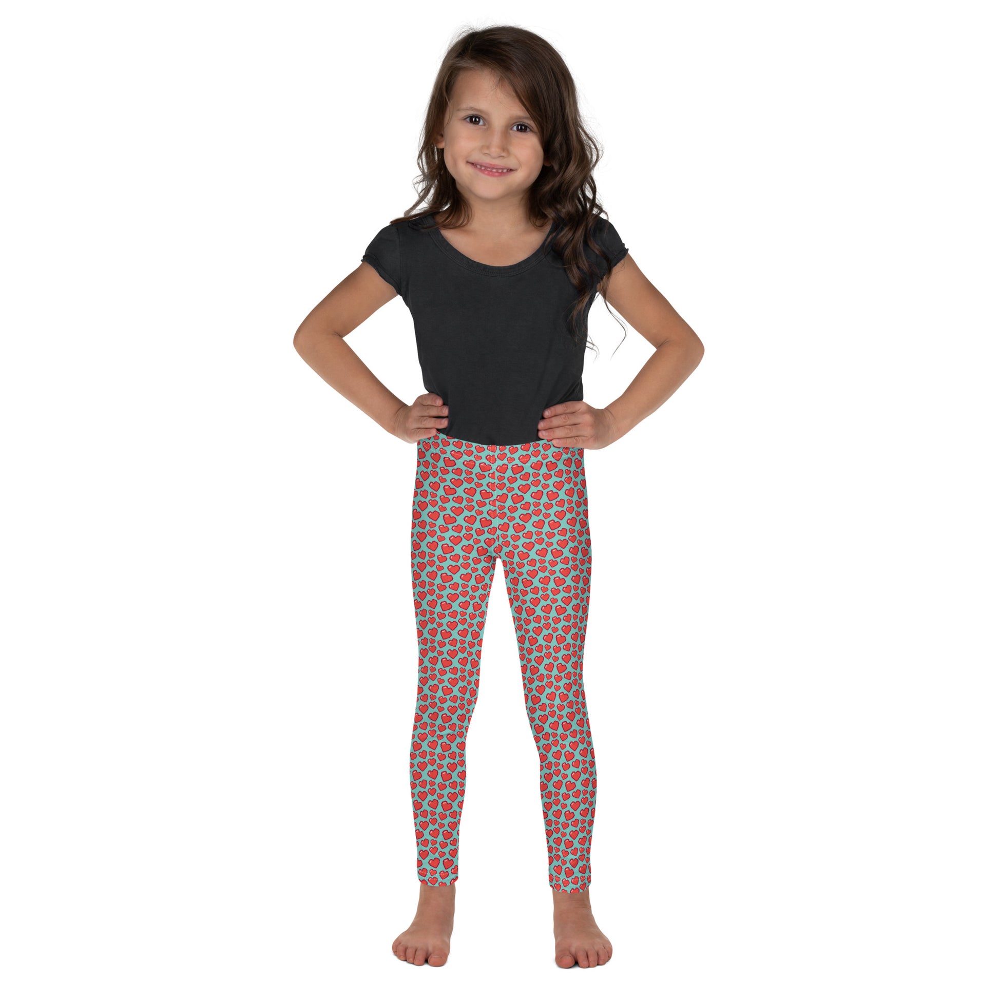 8 bit hearts on turquoise on these soft kids leggings with an elastic waistband are just perfect for active youngsters. The graphics will never lose their color intensity, so they can feel free to get messy in these leggings.