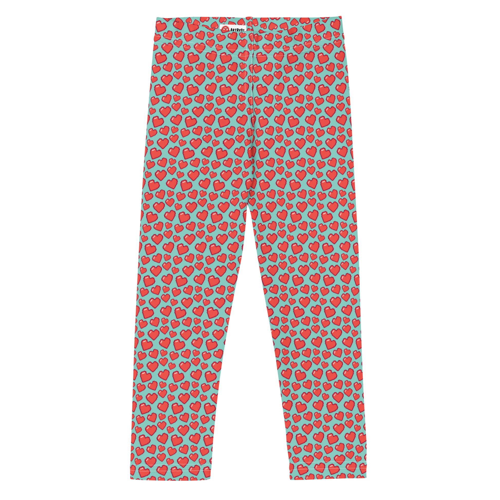 8 BIT HEARTS on Turquoise Kid's Leggings