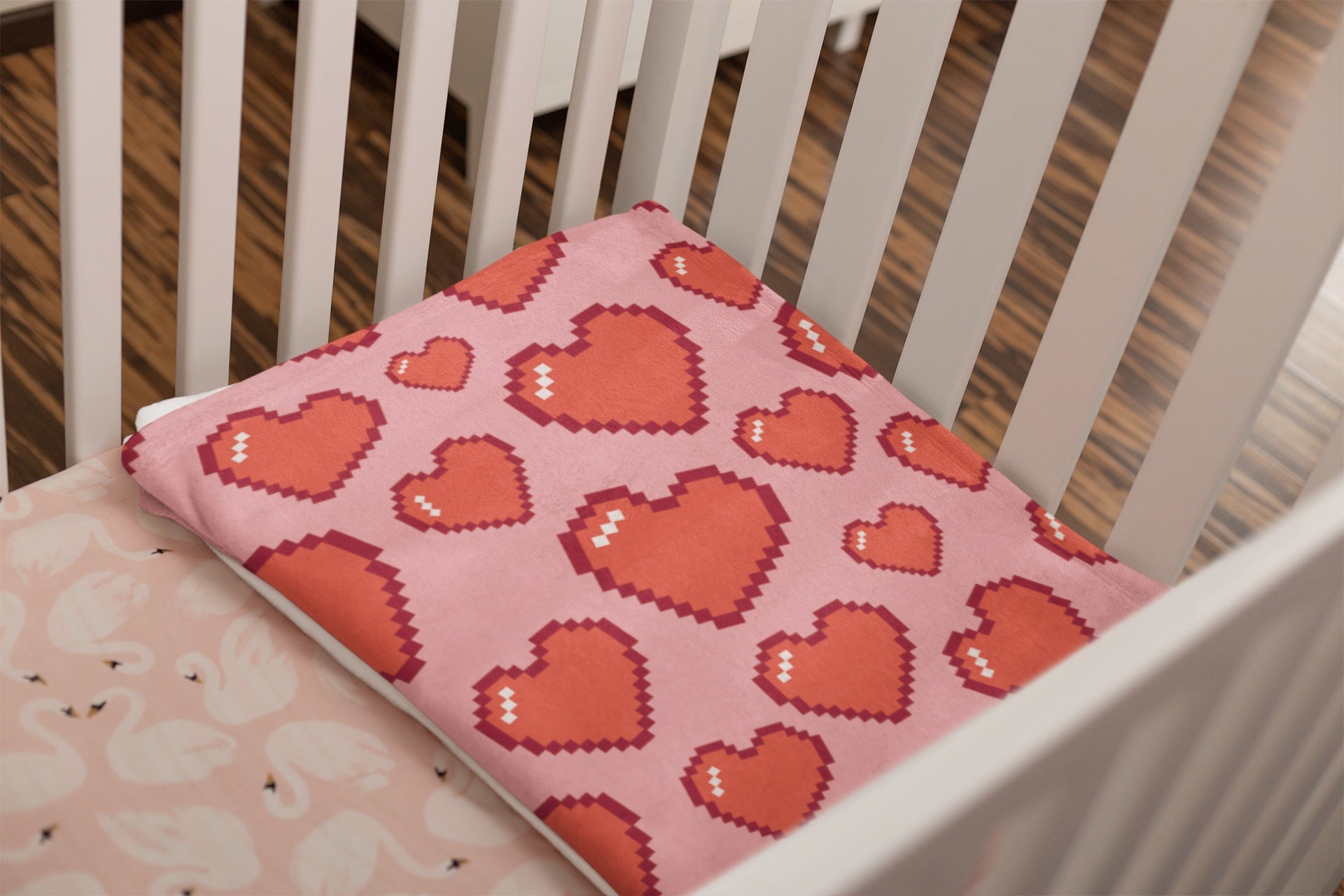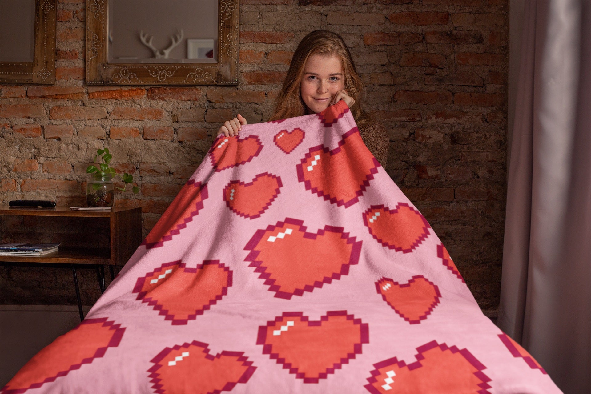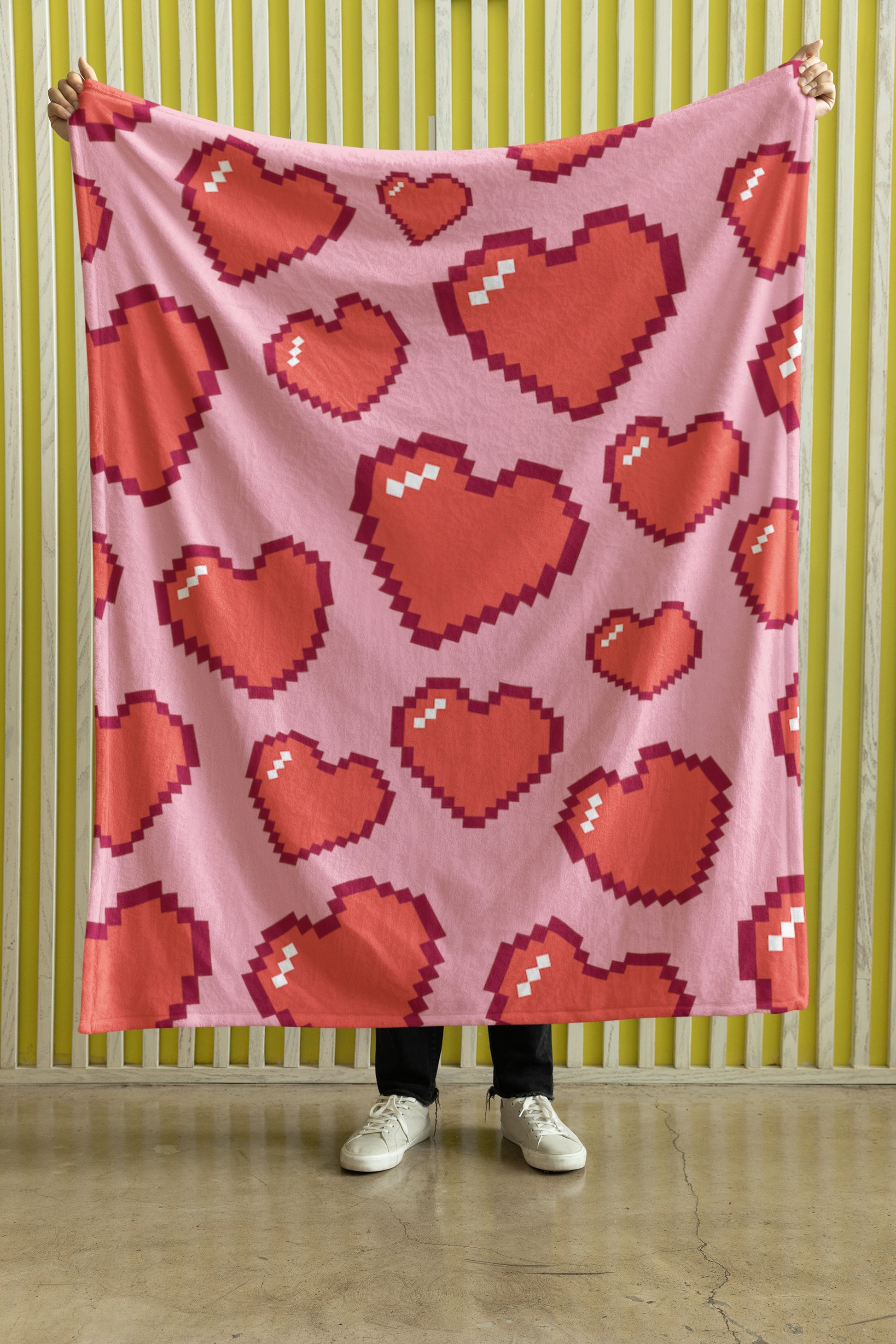 Video game lovers rejoice with the 8bit Hearts fleece blanket.