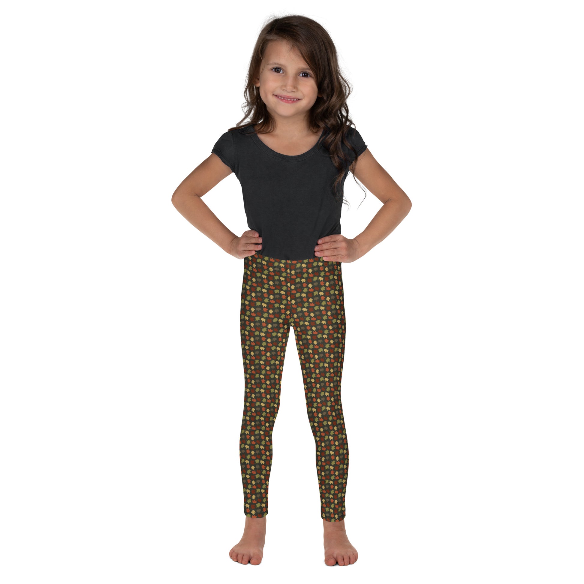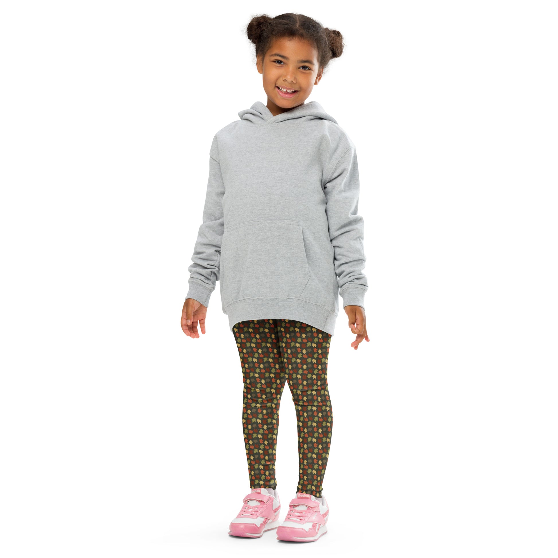 Fall leaves tossed pattern in autumn colors on these soft kids leggings with an elastic waistband are just perfect for active youngsters. The graphics will never lose their color intensity, so they can feel free to get messy in these leggings.