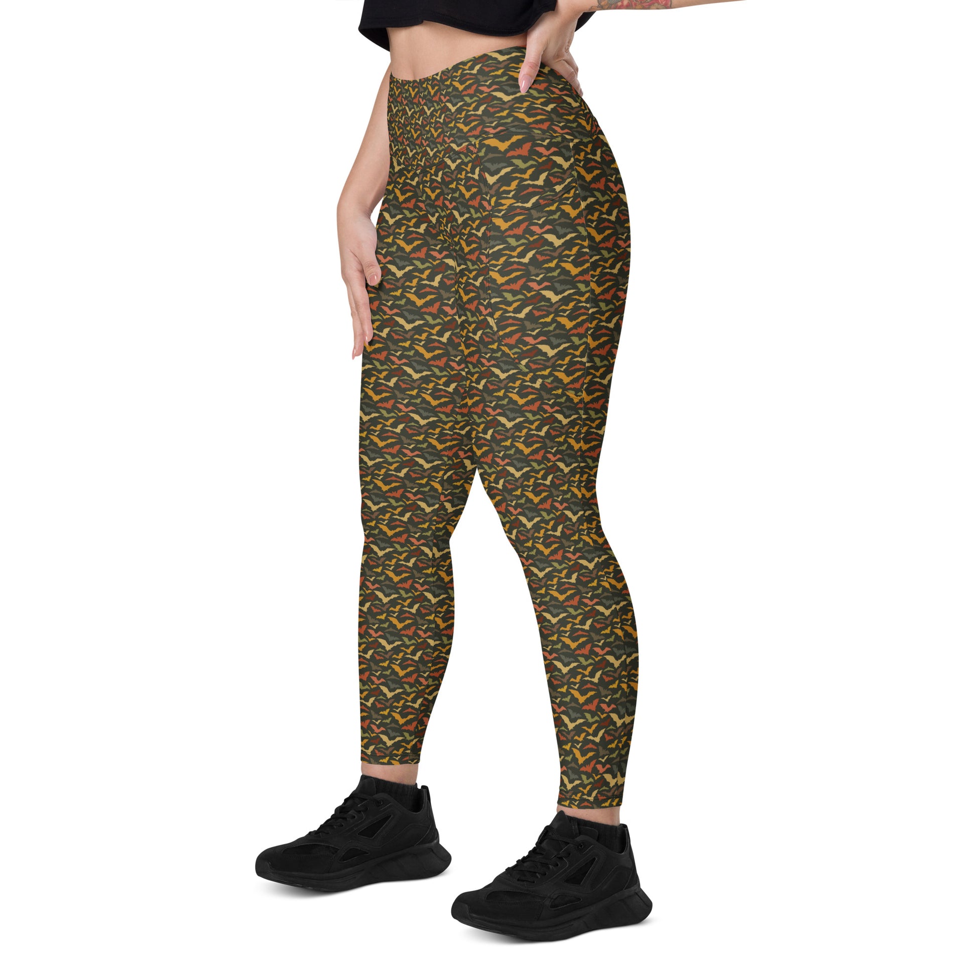 Celebrate Halloween with the bats repeat pattern on leggings with pockets. Sizes from 2XS-6XL.