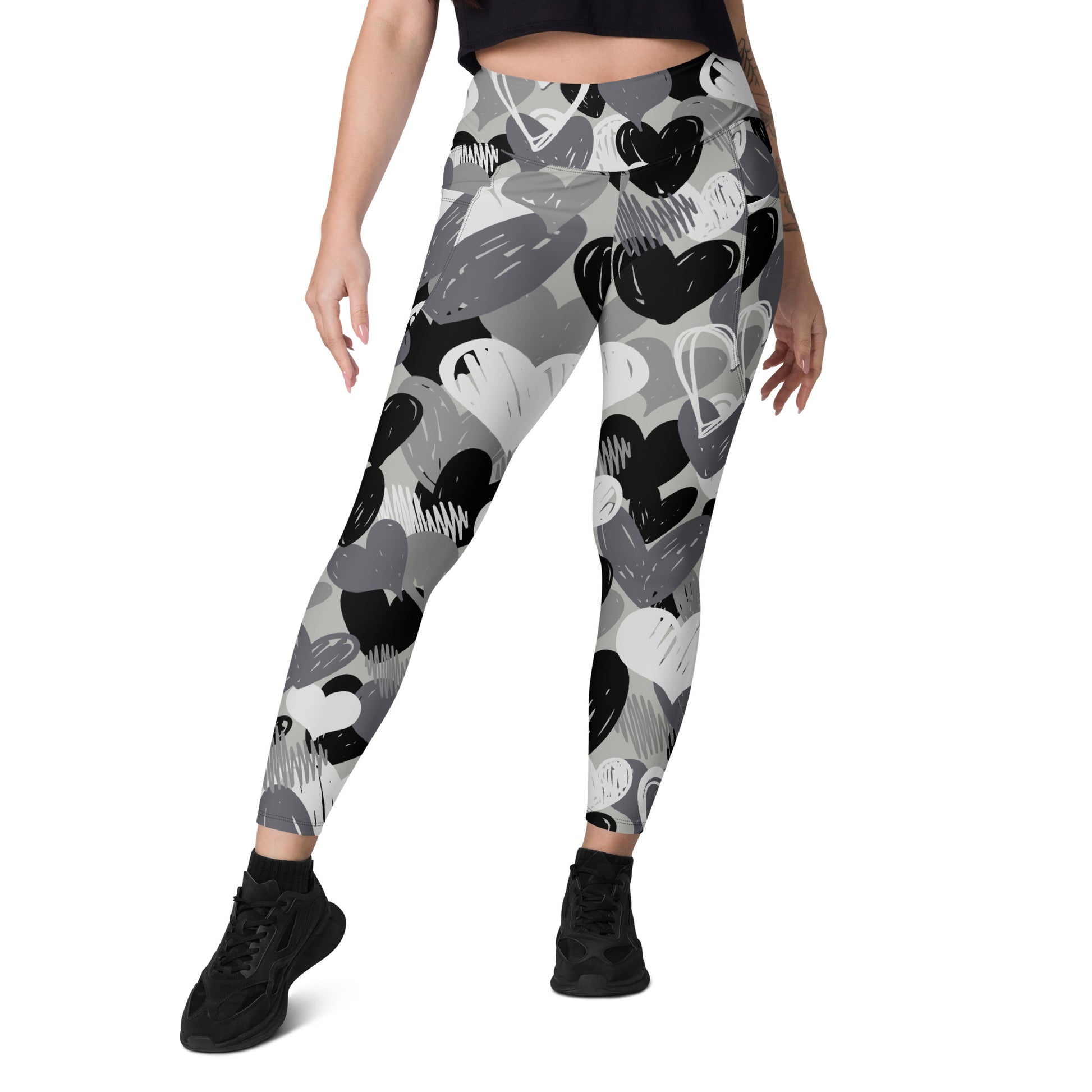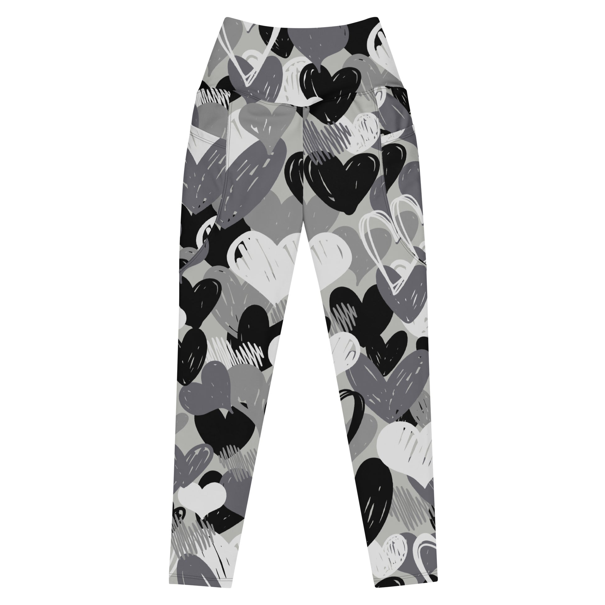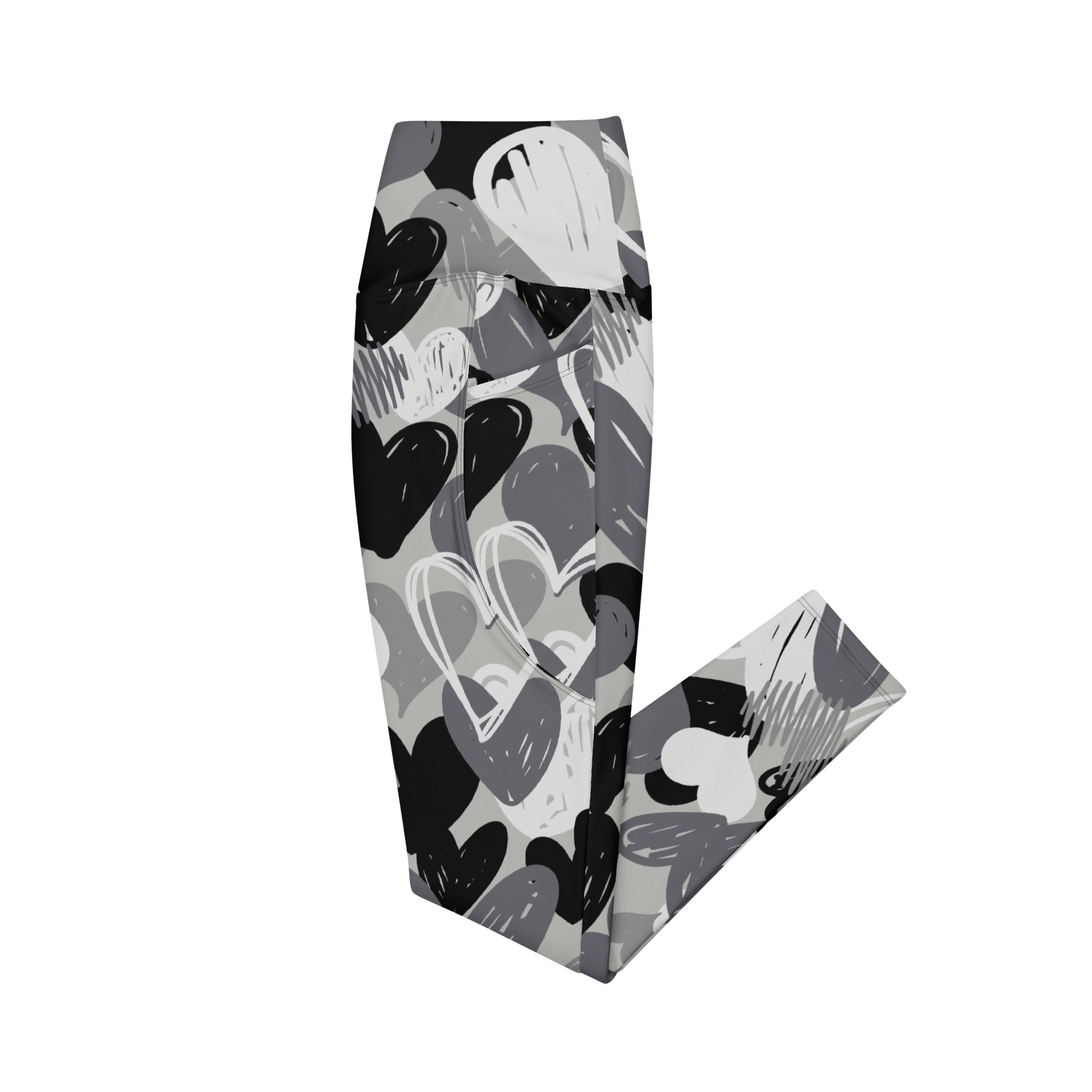 Blend in with camouflage hearts. A beautiful assortment in blacks, grays, and whites. All on leggings with pockets! Choose from 11 sizes!