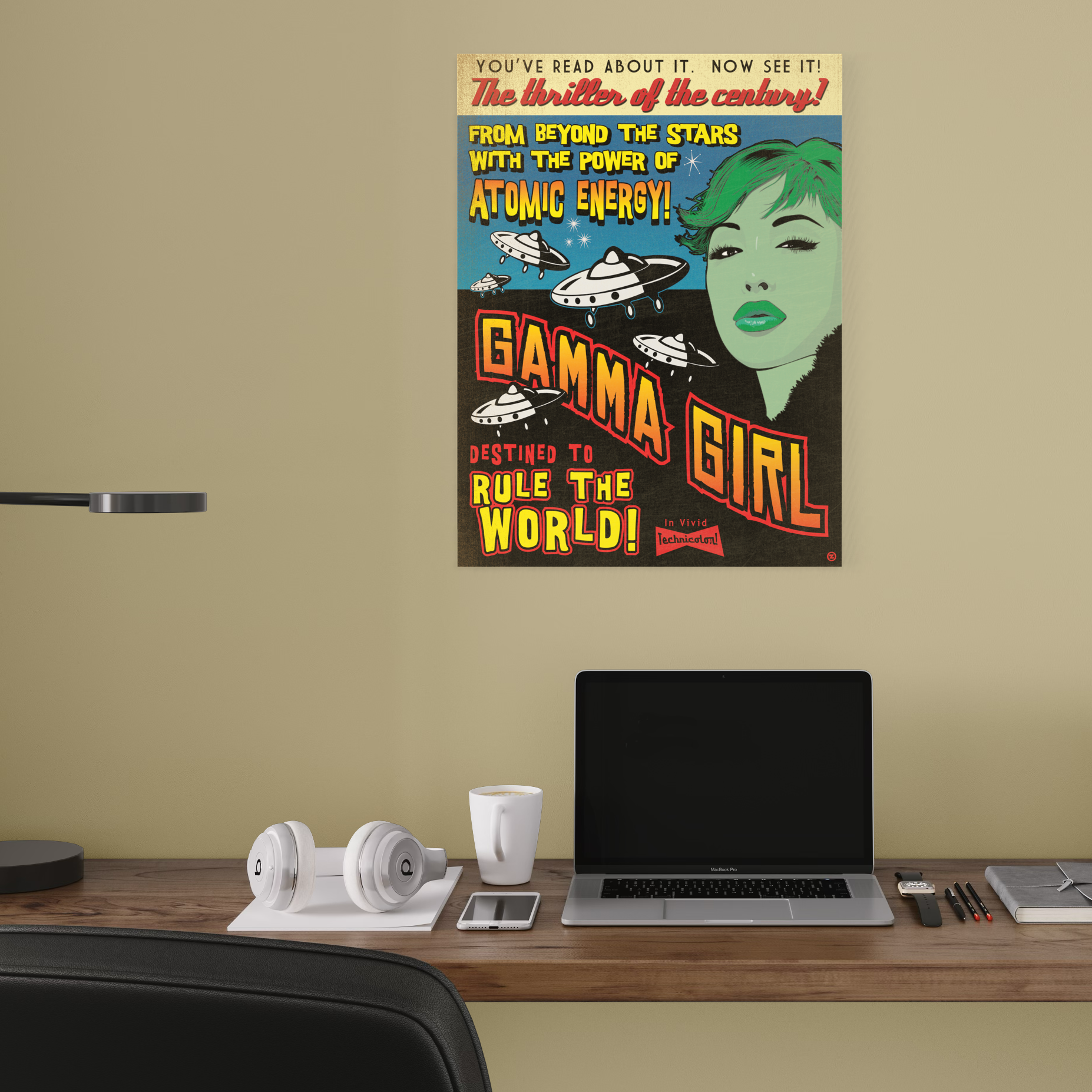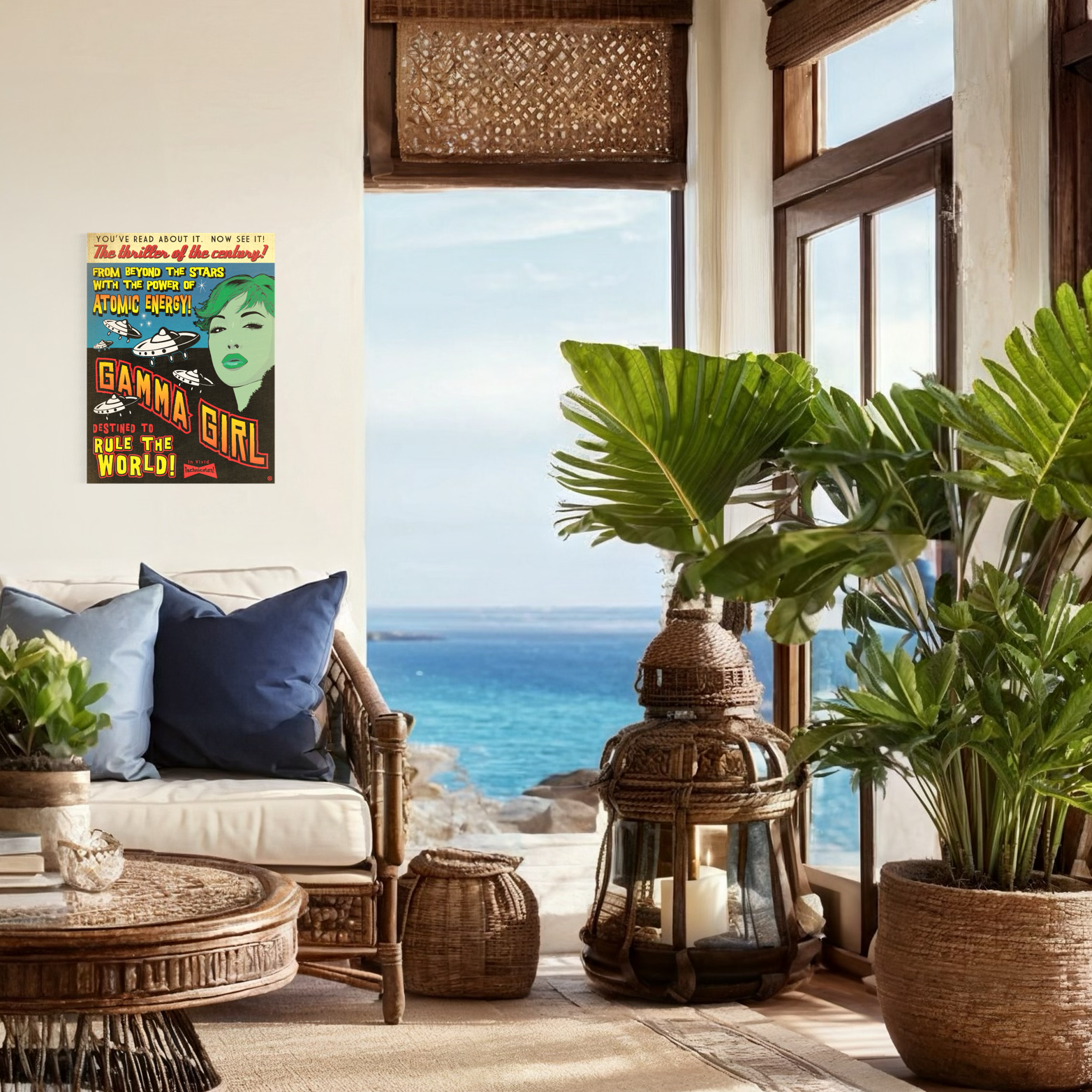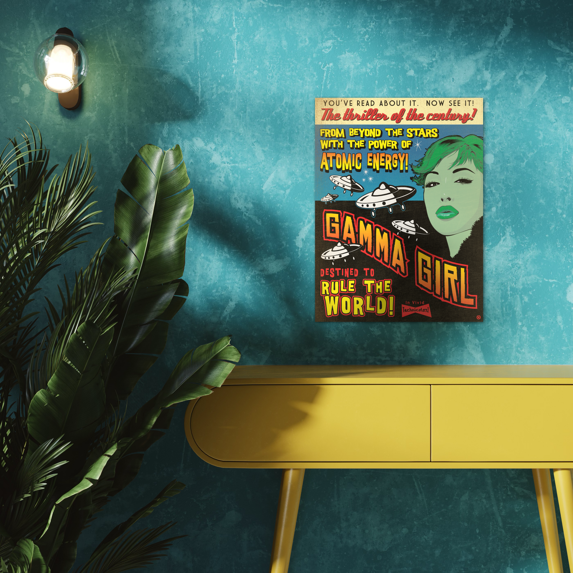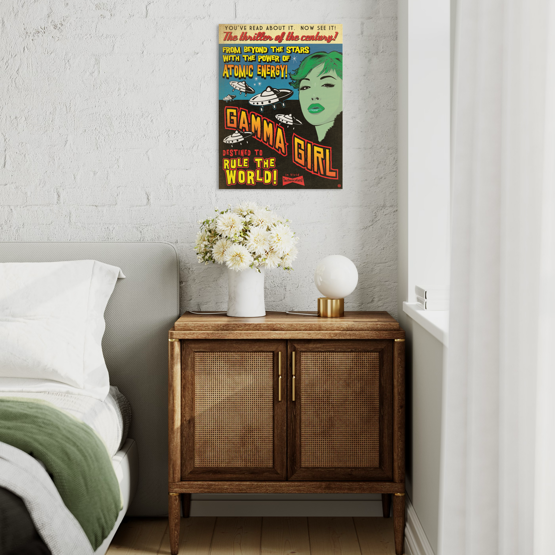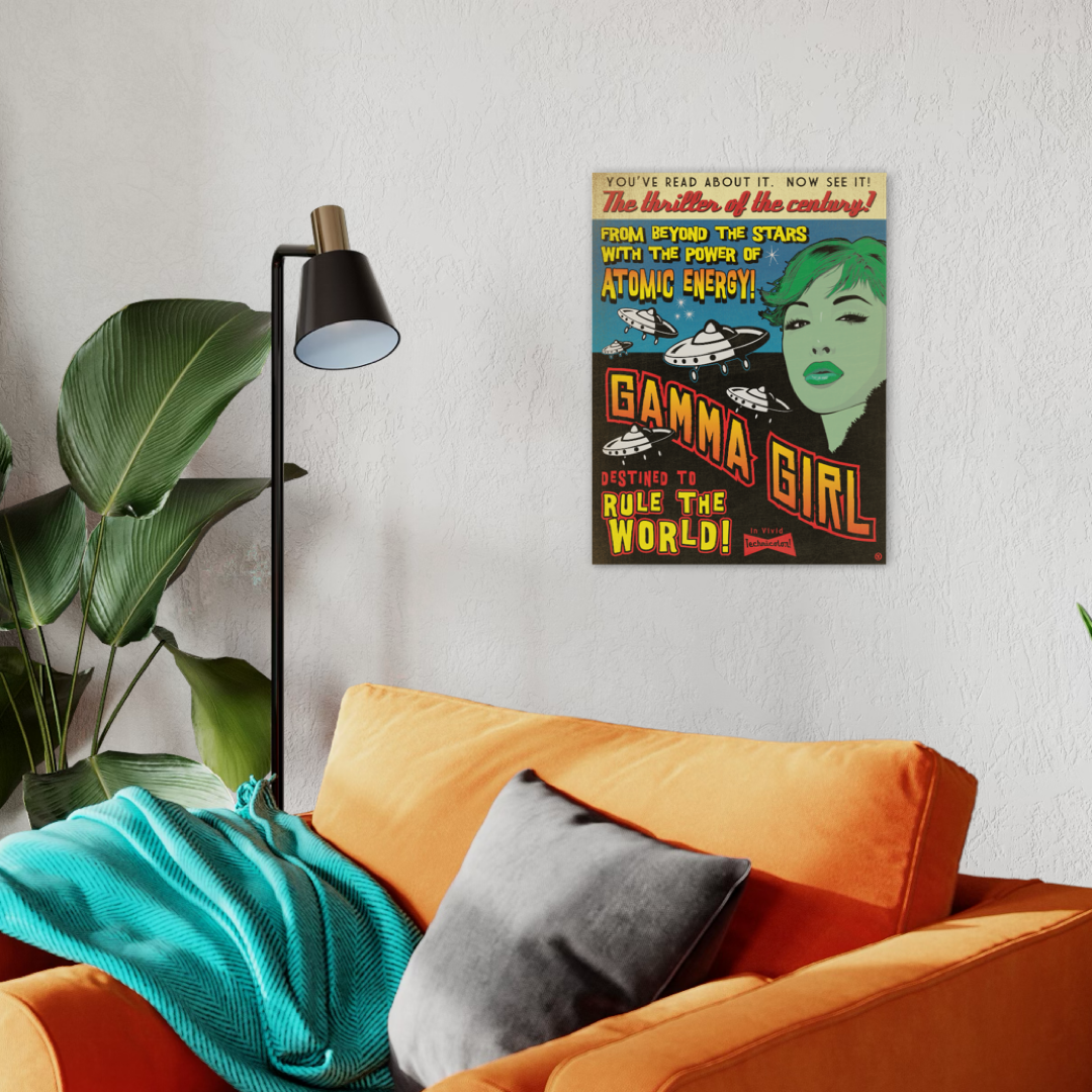 From beyond the stars with the power of Atomic energy!  A nod to vintage B rated movies. Retro art.  For the sci fi fans.
