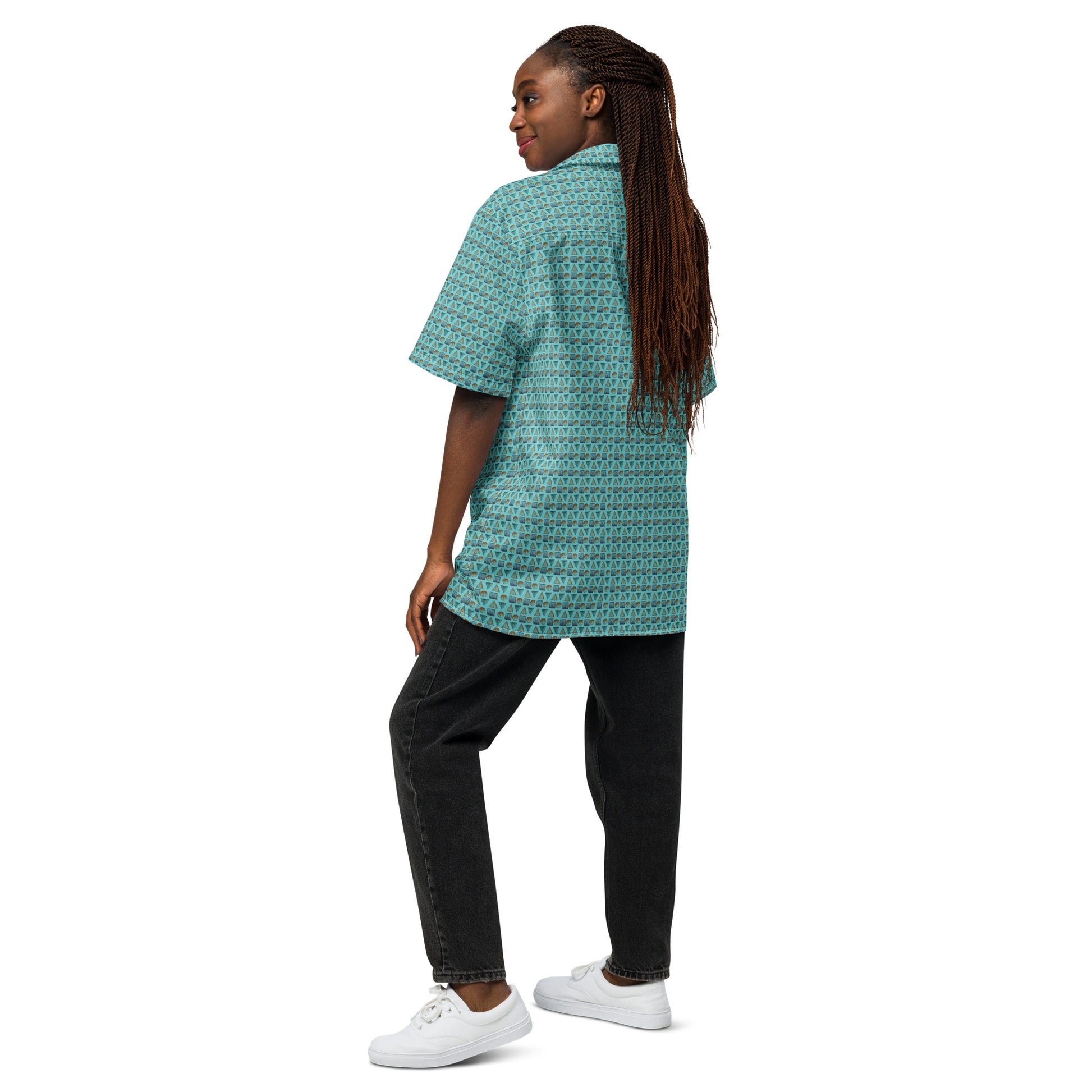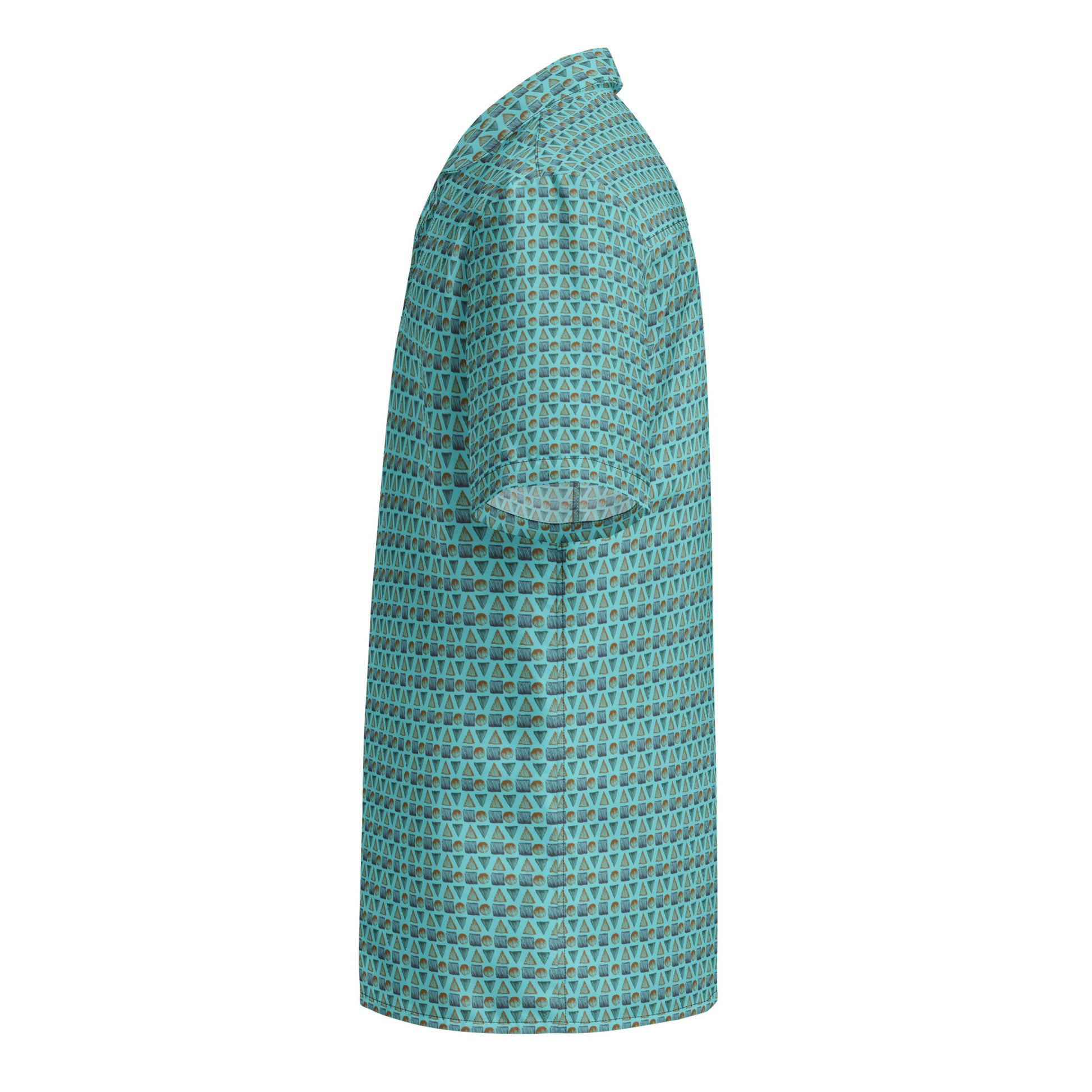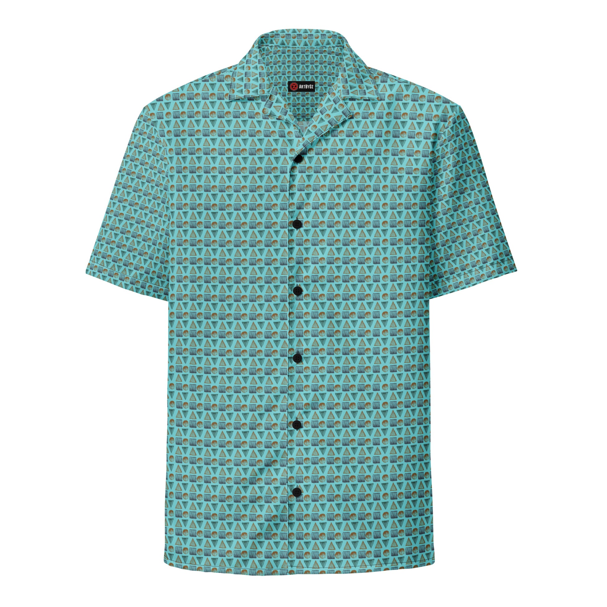 A unique pattern of squares, triangles, and circles on a turquoise background makes this a pretty cool Hawaiian shirt!  Our all over print button shirt is light and comfortable even on the hottest of days. The material is cotton-like ensuring maximum comfort while the moisture-wicking properties deliver a cool and confident feel. This shirt can be worn on casual work days, events, or just a night out on the town.