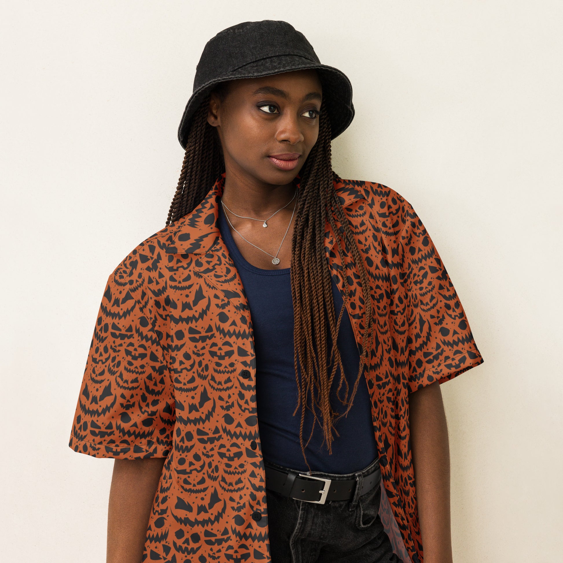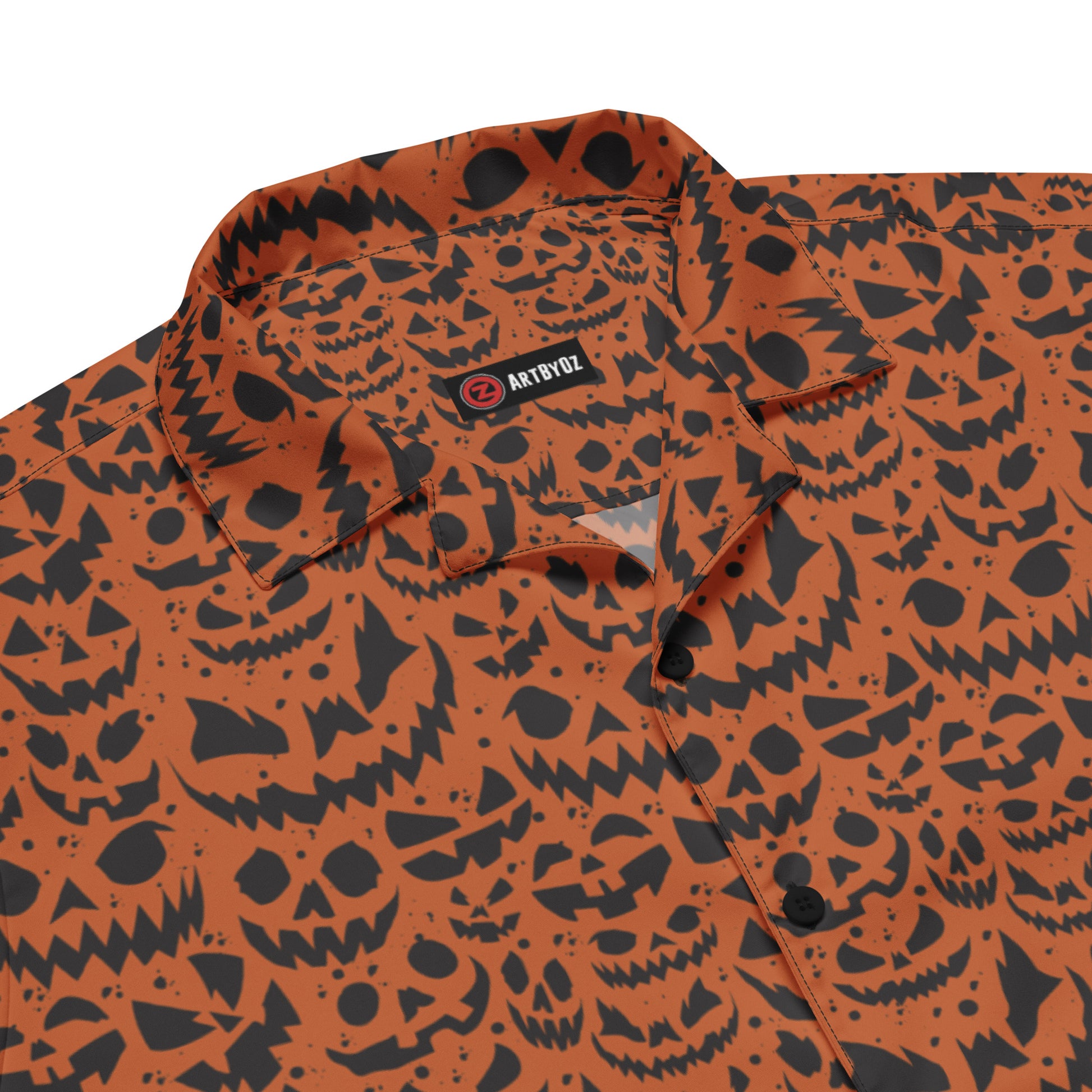 No need to carve a pumpkin, have a blast this Halloween with our Jack o' Splatter Hawaiian shirt.  Our all over print button shirt is light and comfortable even on the hottest of days. The material is cotton-like ensuring maximum comfort while the moisture-wicking properties deliver a cool and confident feel. This shirt can be worn on casual work days, events, or just a night out on the town.