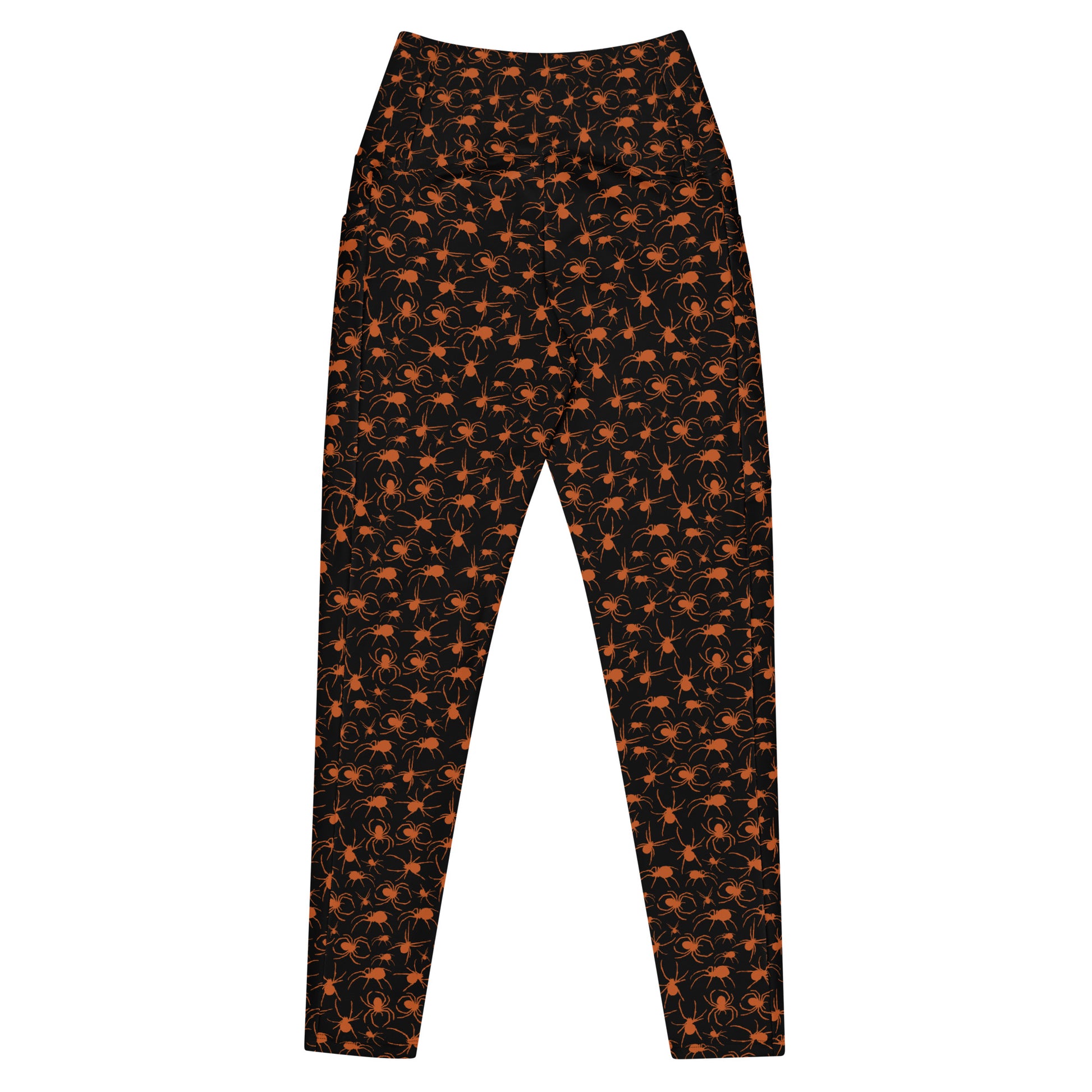 Take all of the most dangerous spiders and scatter them on leggings in orange. A Halloween favorite on a black background. All on leggings with pockets! Choose from 11 sizes!