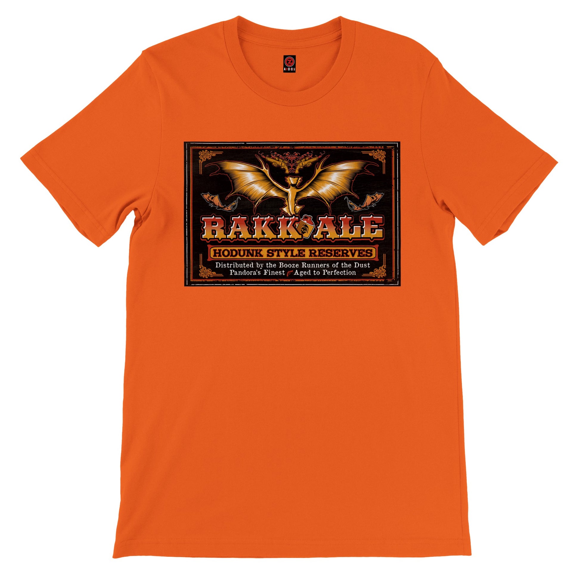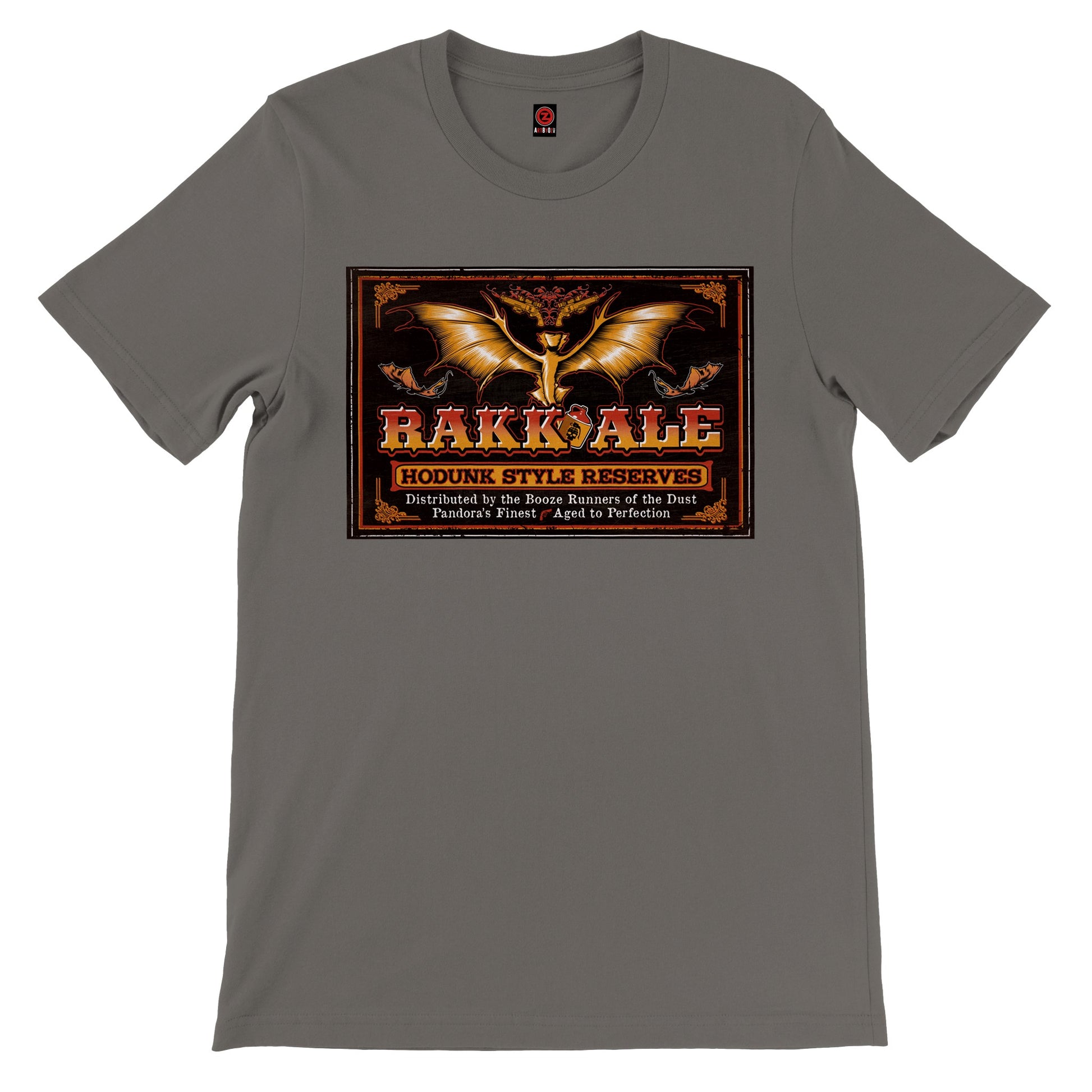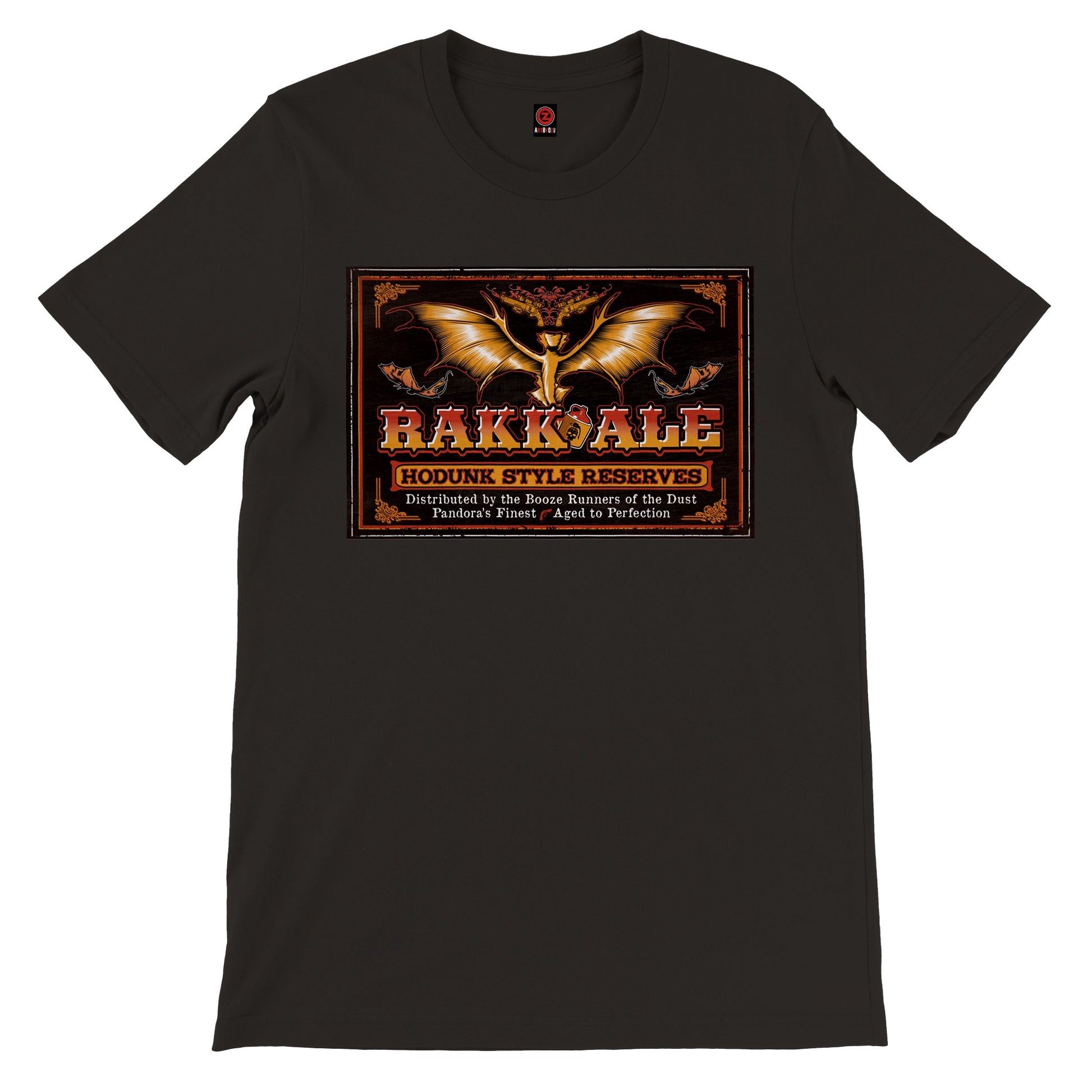 Rakk Ale is distribruted by the booze runners of the dust. Pandora's finest and aged to perfection. Original fan art from the Borderlands game. Celebrate with the official brand Rakk Ale tee!
