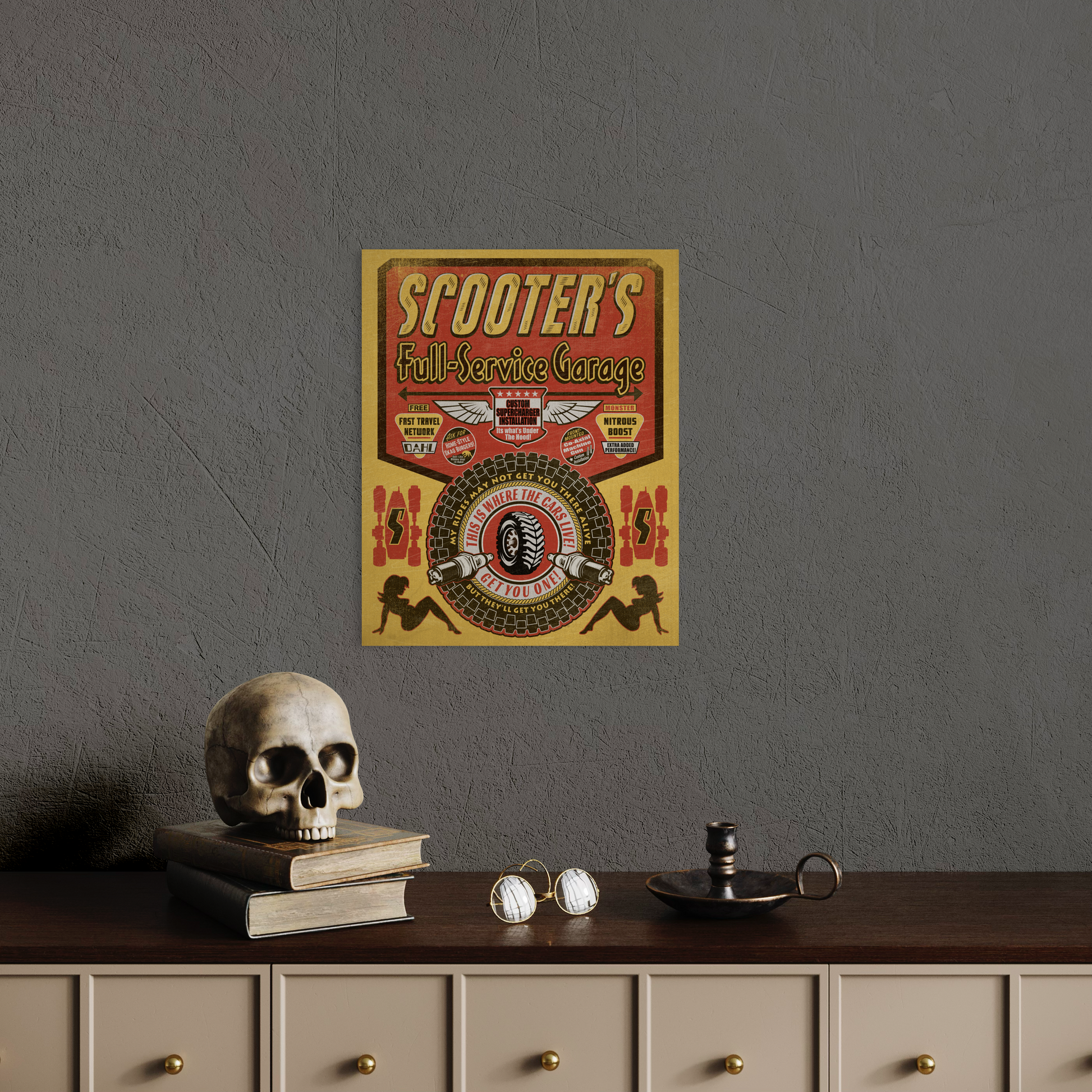 This is where the cars live! Scooter's Garage metal print available in 16x20".
