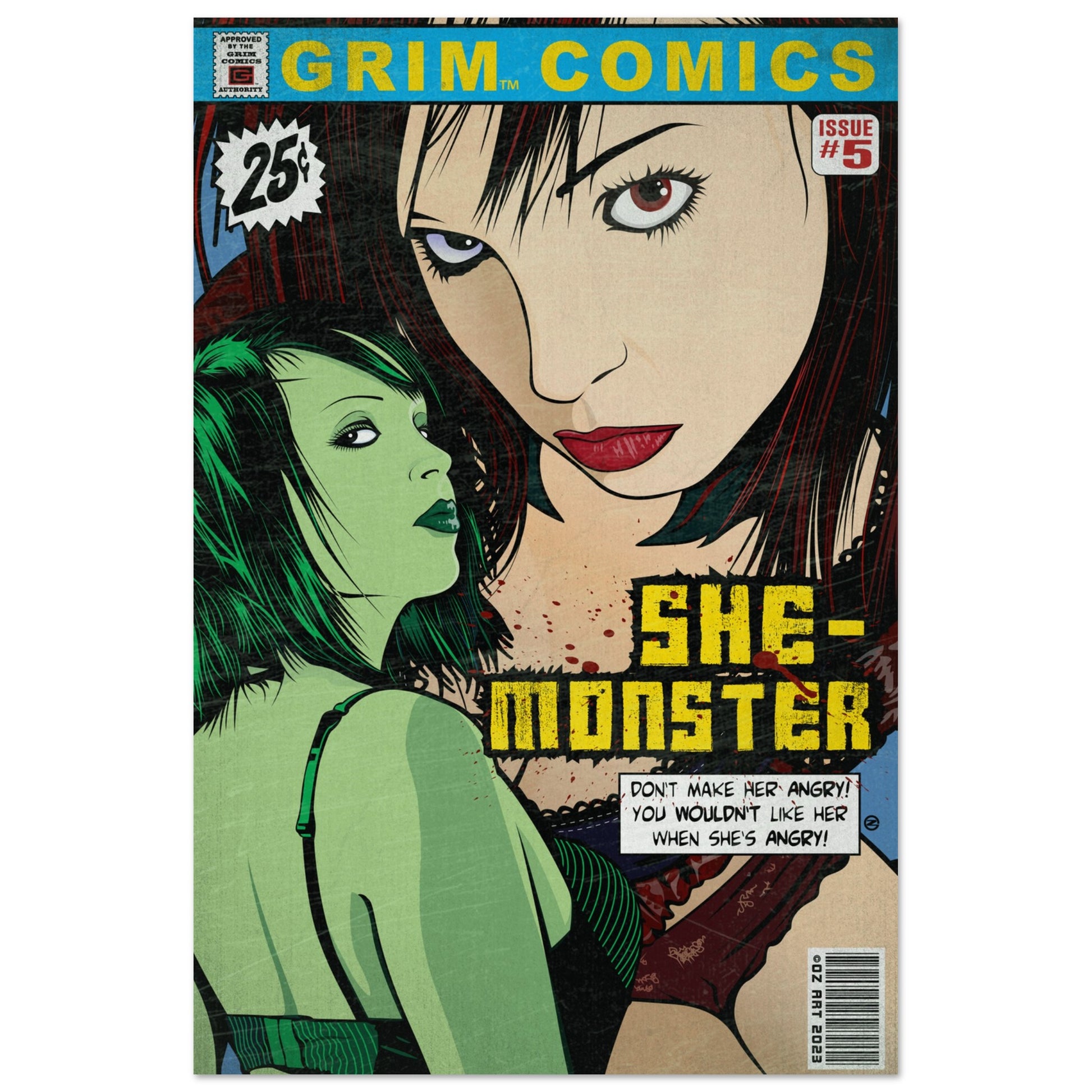 She-Monster is #5 of Oz's ongoing Grim Comics series featuring femme fatales ruling their worlds and kicking major proverbial butt. Yes, they are faux comic book covers leaving the rest of the story to your imagination!