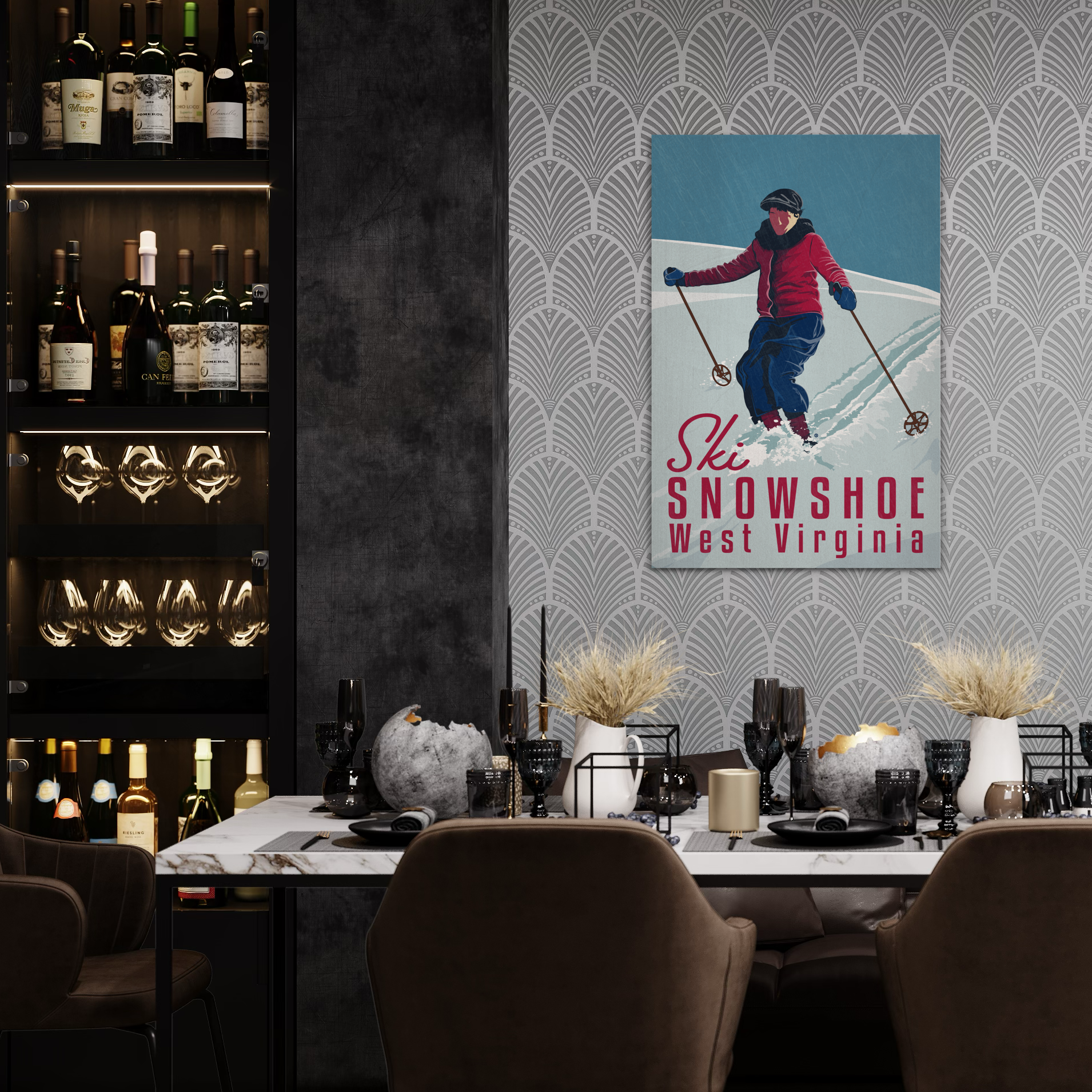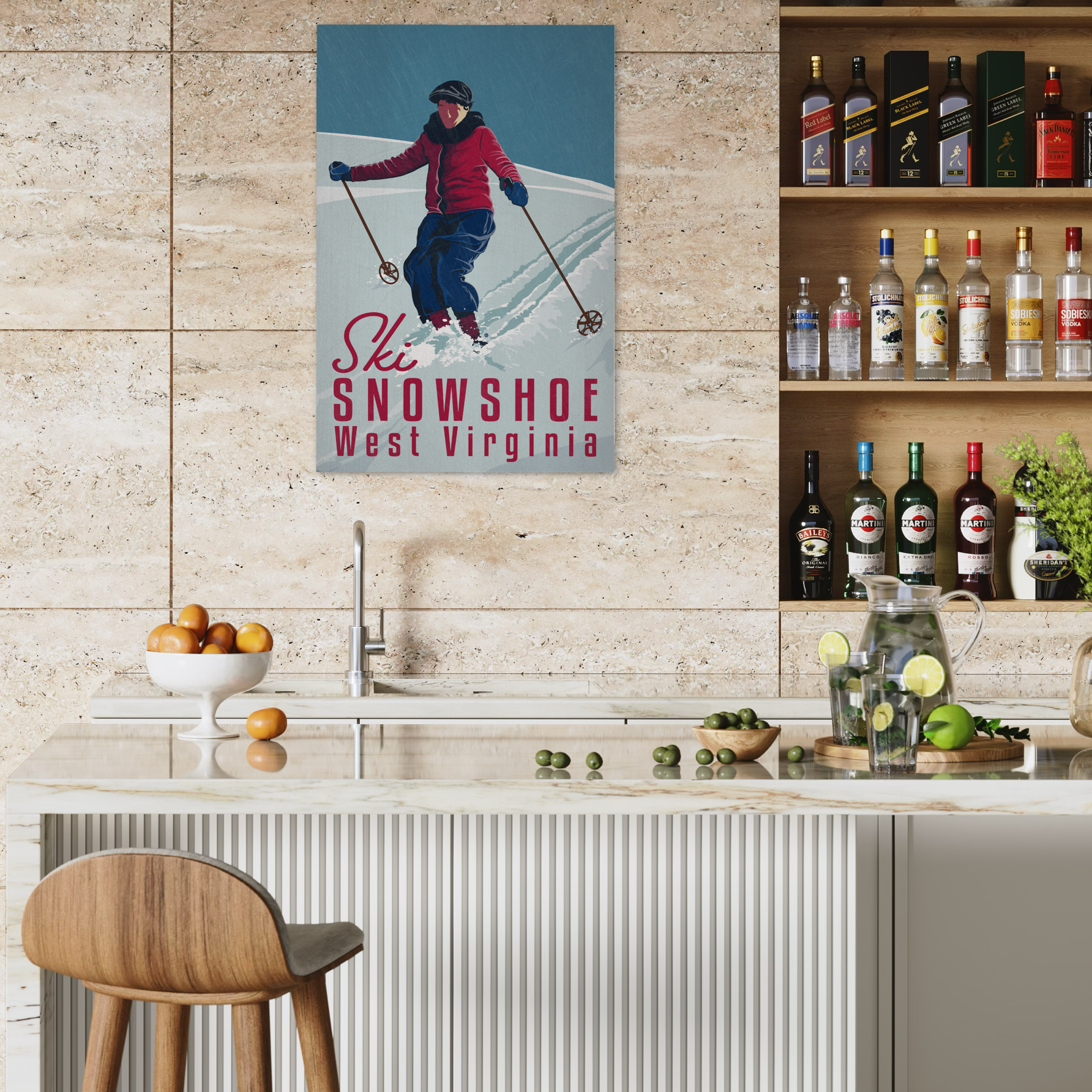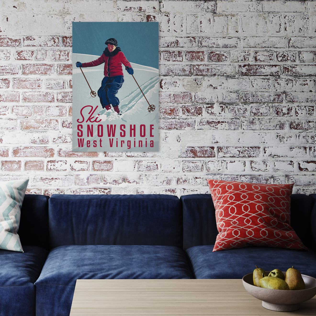 Vintage ski poster for the year 2017. The worn brushed texture adds age to the piece (and looks rad). Part of the ski collection. Available in two sizes. Printed on metal.